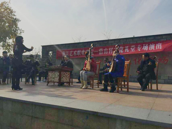 定制原创作品,助力核心价值观传递。浙艺重视创作、排演一些反映身边人身边事的乡土文艺节目,在潜移默化中传递社会主义核心价值观,把面向农民群众开展理论政策宣讲、乡风文明弘扬、文明礼仪教化、文化知识传授等行动,蕴含在原创节目中。比如服务衢州江山凤凰村、府前村、东儒村等地文化礼堂实践中,完成江山市家风家训品牌培育创作,对现有“三句半”、村歌、村歌舞蹈、广场舞进行加工提升,结合重阳节开展《走进凤凰村·和凤凰一起飞》等敬老礼仪演示活动,还在当地采集素材,创作原创小品《迟到的信》、《老有所乐》、《团圆饭》等,传播孝文化,弘扬真善美,潜移默化影响人们的思想和生活方式。又如,学校文化服务志愿者走进南浔练市镇民安村和施浩村文化礼堂,为村民带去歌曲、舞蹈、小品、戏曲等精彩节目,诸多节目创作灵感来源于当地基层百姓生活,反映新农村建设,并把中国梦宣传与社会主义核心价值观宣传有机结合起来,通过“演故事”、“说快板”、“拉家常”等方式,增强人们对社会主义核心价值观的理解,融化于心灵、体现在行为。