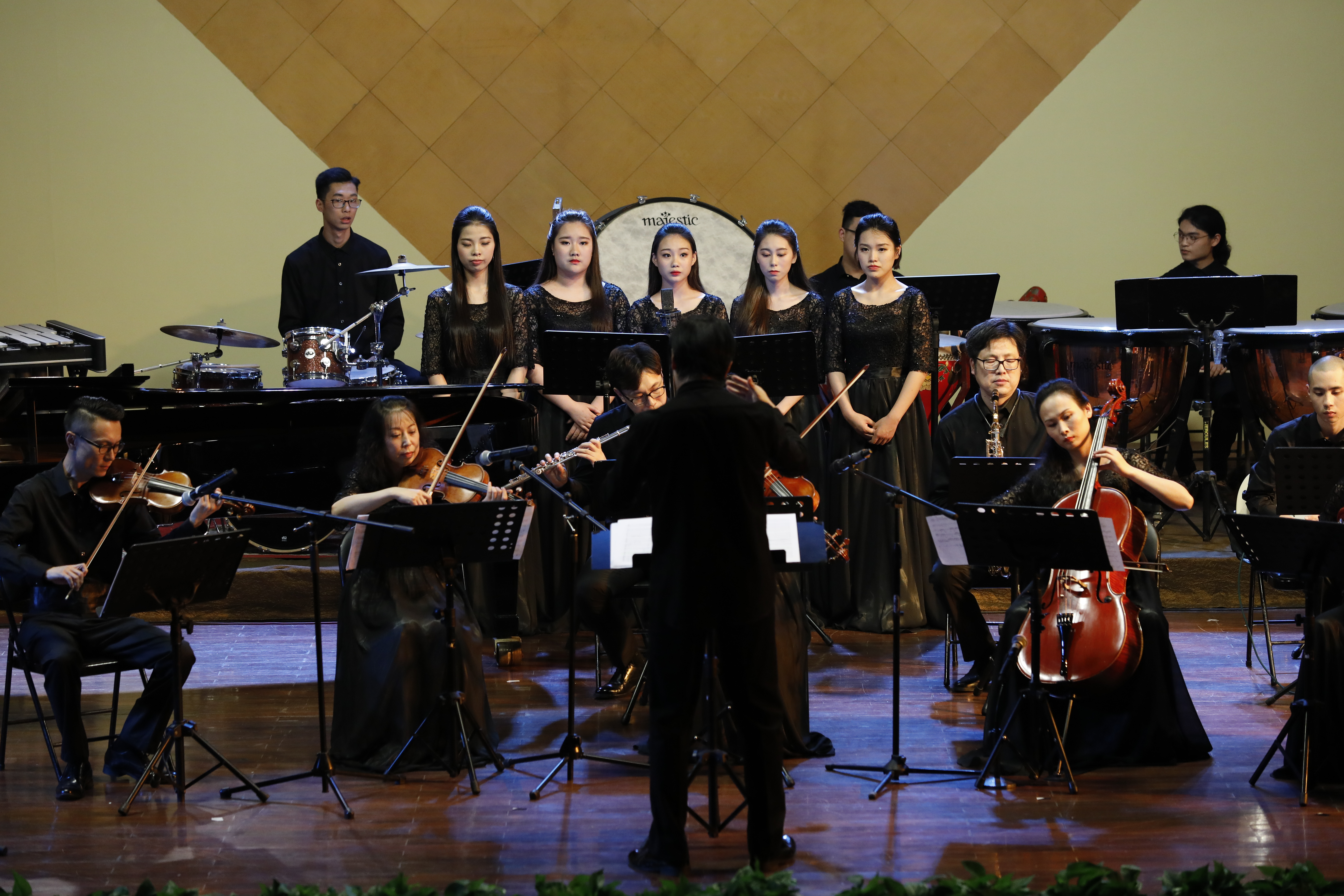 许多人站着听完近90分钟的音乐会。没有赶上昨晚演出的观众还有一次机会。6月9日晚,浙江本土音乐民族管弦乐原创作品音乐会继续在浙艺音乐厅举行。音乐会由浙江艺术职业学院民族管弦乐团演奏。这是一支具有较高演奏水准建制规范的学生民族管弦乐团,由优秀专业教师担任乐团首席及声部指导,着力于“浙江本土音乐原创作品表演、研究与推广”。音乐会第一首民族管弦乐《治水令》由作曲家朱晓谷创作,由“灾”“难”“治”“凯”四部分组成,围绕大禹治水主线一气呵成,表达了五水可治、家园可兴的精神;作曲家王天明的民族室内乐《八婺来风》引用了浙江本土音乐中璀璨的婺剧音乐元素,叙述浙江八婺大地的人文情怀;作曲家周煜国的扬琴协奏曲《咏竹》歌咏的是江南的竹子,颂扬的是中华民族的风骨气节;压轴曲《鉴湖侠女——秋瑾》是何占豪的作品,用音乐讲述秋瑾的故事,“不惜千金买宝刀,貂裘换酒也堪豪。一腔热血勤珍重,洒去犹能化碧涛”,侠女的诗正是巾帼英雄的最好写照。