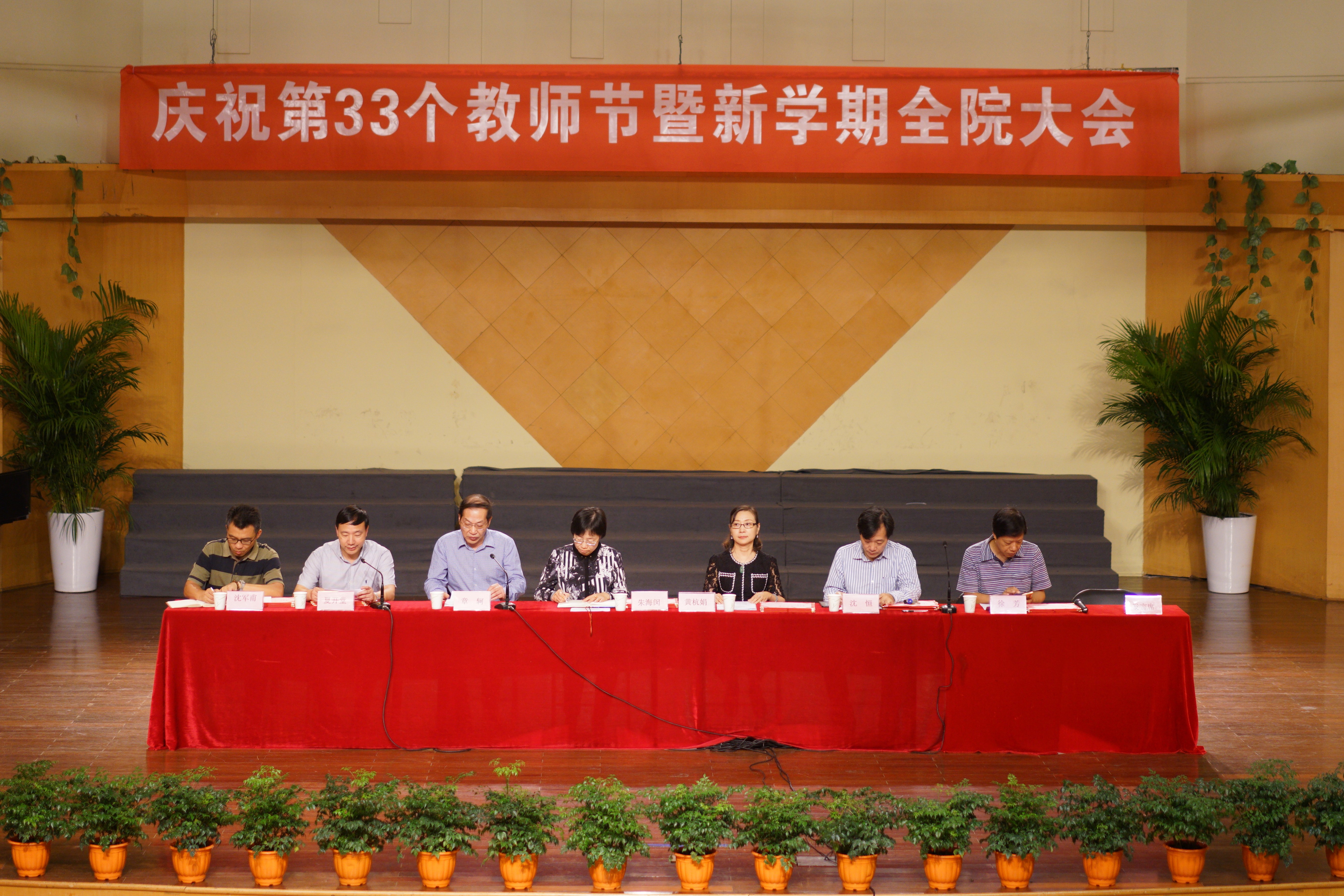 9月15日上午,浙江艺术职业学院庆祝第33个教师节暨新学期全院教职工大会在音乐厅举行。院领导朱海闵、黄杭娟、章轲、沈恒、夏开堂、徐芳、沈军甫和全院教职工出席大会。党委委员、副院长章轲主持大会。