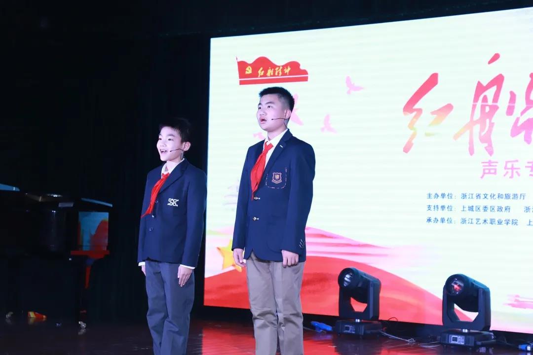 小组唱《红船向未来》拉开了整场音乐会的序幕,《咏梅》《毛主席的话儿记心上》《沁园春·雪》《我和我的祖国》等一首首脍炙人口的红色歌曲带领整场观众重温党的光辉历程,致敬峥嵘岁月,憧憬美好未来。原创作品《我们是荆门》唱出了浙江和湖北荆门携手抗击疫情的深厚情谊和坚定信心。省政协社法委原主任尚清,笛子演奏家、浙江艺术职业学院音乐系主任、教授吴樟华,杭州市建兰中学艺术教师张敏、学生姜茗轲,杭州新世纪外国语学校陈航,学校小营街道拾锦年华艺术团等同志作为助演嘉宾参与演出。