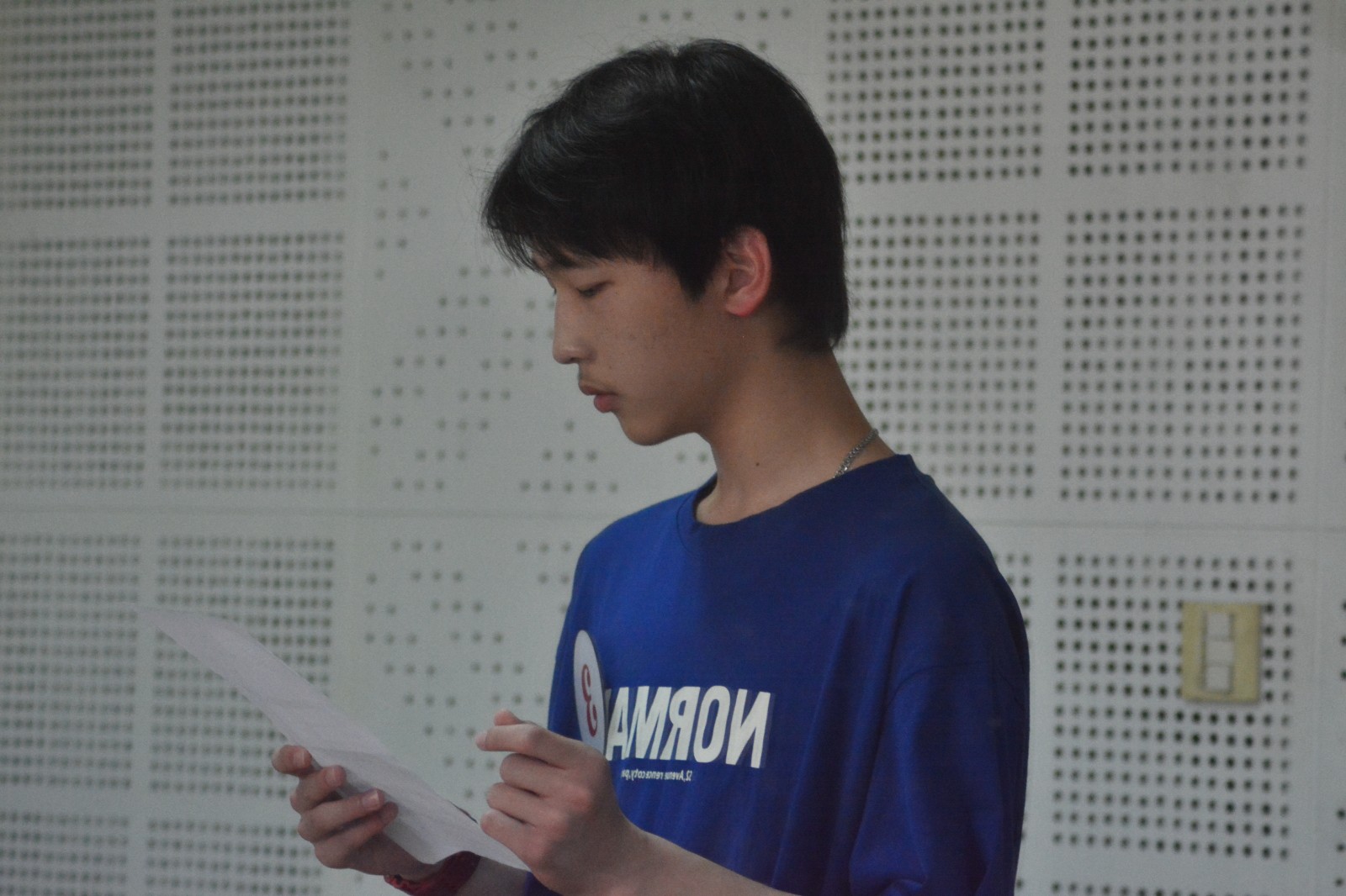 清晨,5号楼内,考官、考务人员、志愿者早早就绪等待考生进场。候考室内,志愿者宣讲了考试流程,贴心地给候考同学分发小零食,缓解紧张情绪。考生们抓紧时间练习舞蹈,朗诵台词,开嗓,耐心等待考试。音乐剧专业需要有一定艺术专业基础,专业面试从声乐、形体、台词、视唱练耳四个方面综合考量考生的专业素质,考官由浙艺和浙传的专业老师共同组成。