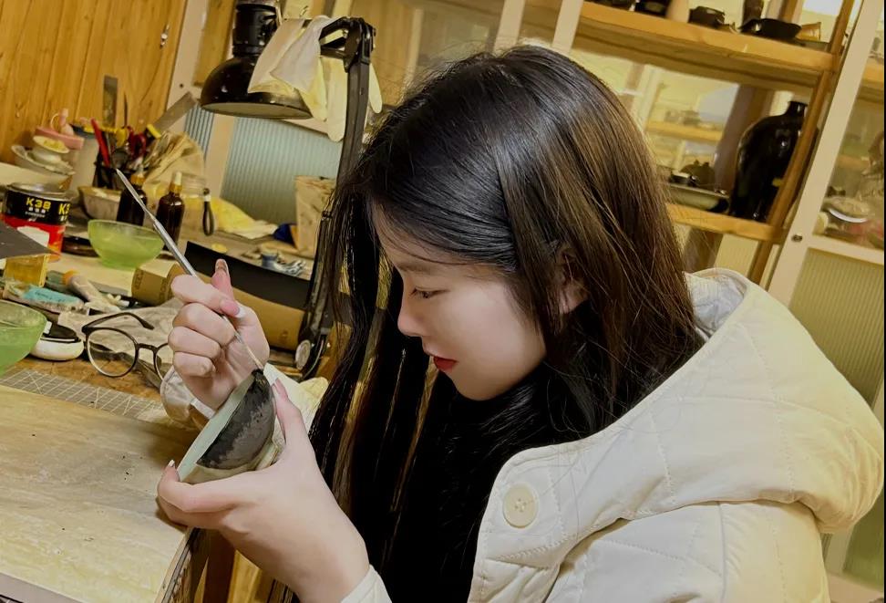 ▲文物修复与保护专业学生正在实训室为“宋韵”毕业展准备作品