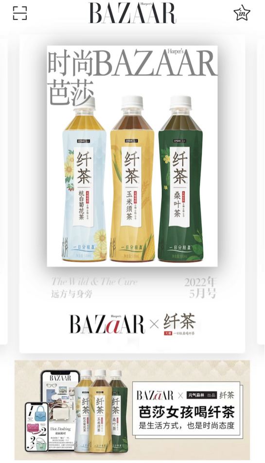 作品简介:《时尚芭莎》向年轻女性传递着美丽、自信、智慧、健康、环保的生活态度,纤茶是一款主打0糖0脂0卡无咖啡因的无糖植物茶饮。芭莎女孩喝纤茶作为两者的碰撞,洞察了年轻人对时尚和便捷式养生的喜好和需求。创作团队根据纤茶的三个口味分别制作了三个主题的小视频,共计30秒,并通过模拟mini芭莎小程序的界面将其合三为一,用三种不同的风格给观众带去三种对于时尚和纤茶的不同认识。