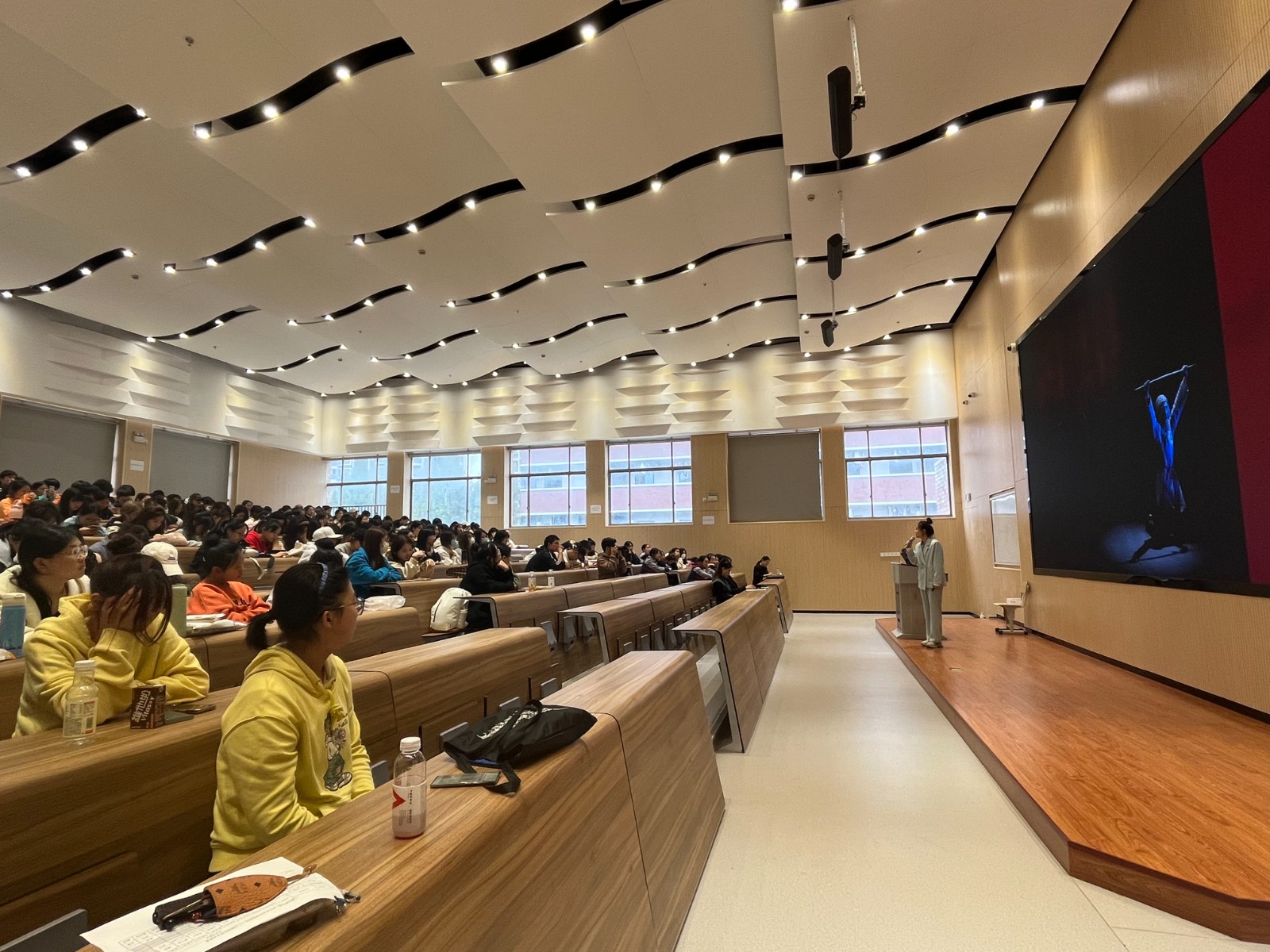 “习近平总书记在二十大报告中,27次提到奋斗,更强调了团结奋斗,可见,奋斗已成为习近平总书记讲话中的一个关键词,同时也成了中国人不变的信念。”基础教学部教师宣讲员魏晶晶以“十年伟大变革”为切入点,讲述了奋斗的中国和坚守信念努力奋斗的浙艺人,深情地表达了新时代新征程上的每一位中华儿女、每一位浙艺人都会因奋斗而更加幸福。