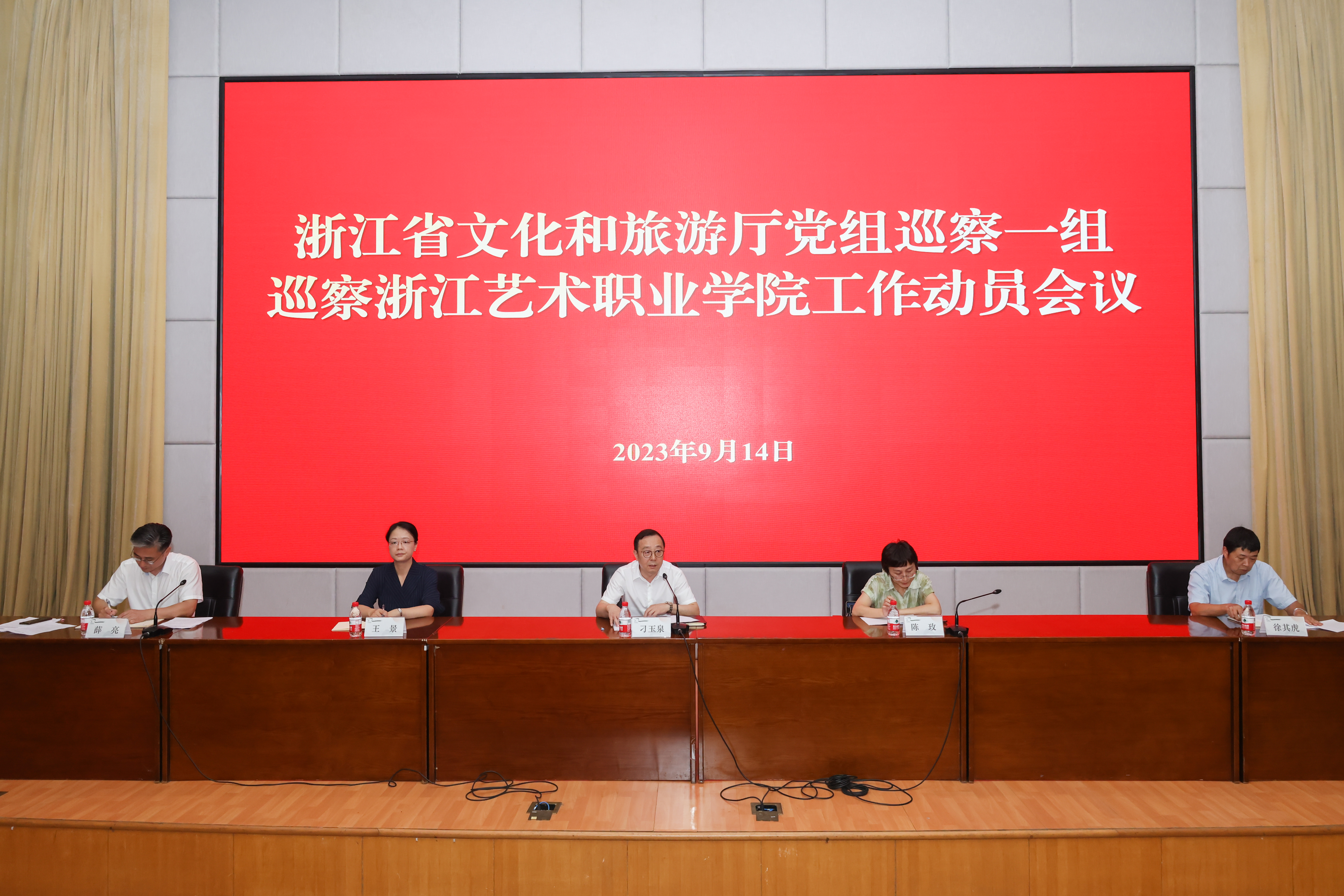 根据省委巡视工作统一部署,9月14日下午,省文化和旅游厅党组巡察浙江艺术职业学院工作动员会召开。会前,省文化和旅游厅党组第一巡察组组长刁玉泉主持召开与学校党委书记薛亮的见面沟通会,通报了有关工作安排。会上,刁玉泉作了动员讲话,对做好巡察工作提出要求。薛亮作表态发言。