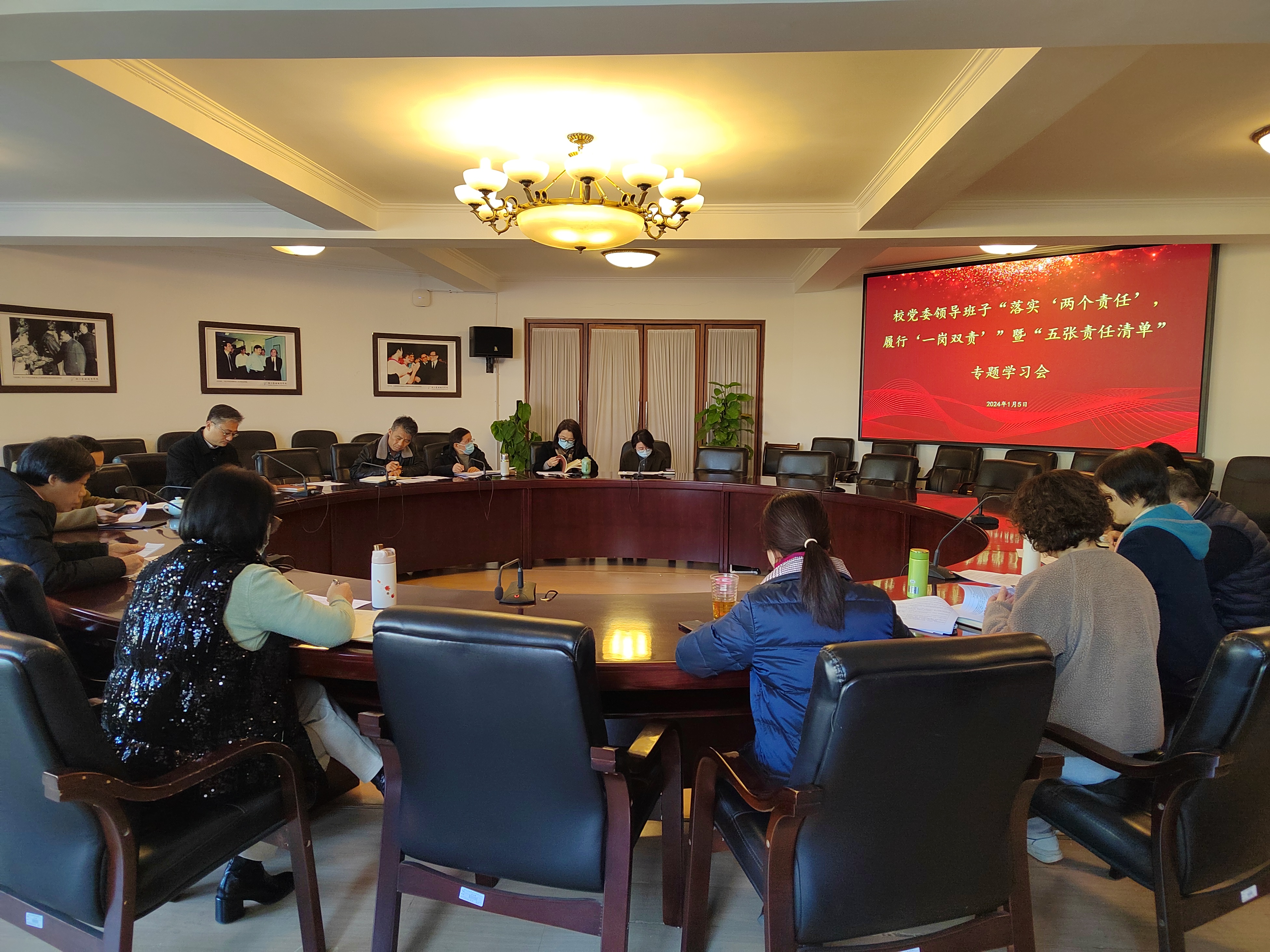 1月5日上午,学校召开校党委领导班子“落实‘两个责任’,履行‘一岗双责’”及“五张责任清单”专题学习会。校党委班子成员参加会议并进行学习交流,办公室、组织部、宣传部、纪委办、审计处等职能部门列席会议。