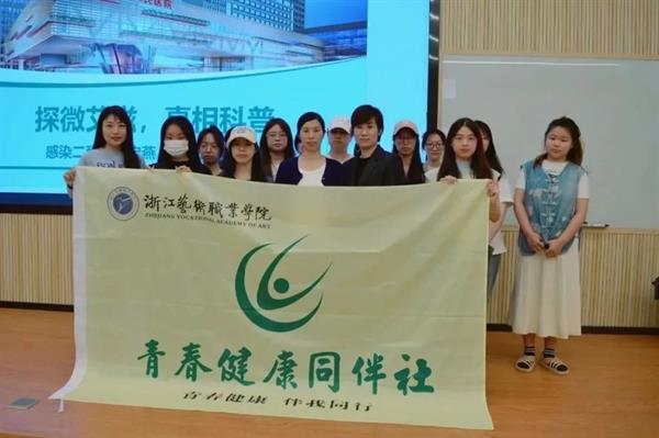 浙江艺术职业学院青春健康同伴社是在学校团委和杭州市计生协指导和支持下,组建的一支专注于青春健康教育与志愿服务的学生社团。开展了青少年健康、艾滋病预防、禁毒防艾等内容丰富、形式多样的宣传教育活动,是一支乐于奉献的青年志愿者队伍。社团创建了开放、友好的环境,让同学们能够自在地讨论和学习有关青春健康的各类话题,消除困惑和误解,促进学生健康发展。社团举办了各项具有浙艺特色的校园文化活动。