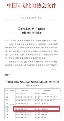 青春健康高校项目是为了有效落实《健康中国 2030”规划纲要》《生殖健康促进行动方案(2023-2025年)》等文件精神致力于为青年人提供性与生殖健康的正确知识帮助他们建立健康、安全的生活态度。此次申报,浙江省共有22所高校获得立项,此次立项是我校在该项目第二次获得国家级立项,不仅代表着我校在青春健康方面领域获得了肯定,更为我校师生提供更广阔的发展空间和更丰富的实践机会。