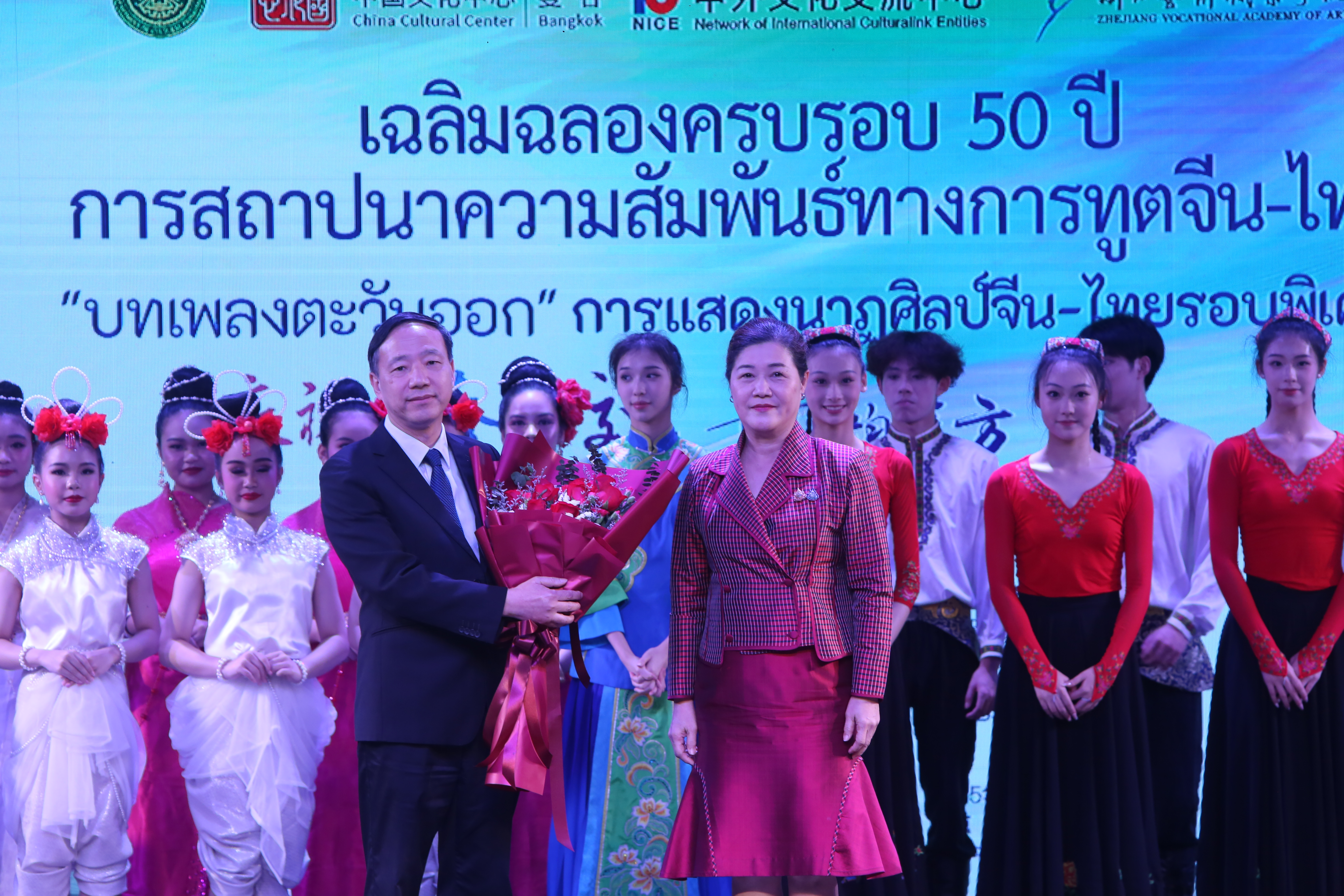 为庆祝中泰建交50周年,促进中泰两国文明互鉴,6月27日至28日,“中泰建交50周年中泰友好交流盛会”和庆祝中泰建交50周年“舞韵东方中泰传统舞蹈专场演出”分别在泰国诗纳卡琳威洛大学和曼谷中国文化中心举行。