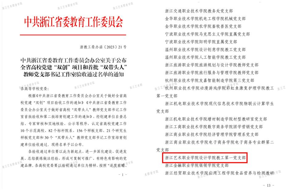 开展“红色寻访”实践教育,推出三季“设计清风”廉洁讲堂,与大运河(杭州)党建联盟、滨文社区党总支等开展党建联建。实施“以样板打造样板”,推动“七彩先锋”强基工程变革重塑,入选省委直属机关“双建争先”优秀案例,先后立项省级“样板支部”、校级“标杆院系”、“双带头人”教师党支部书记工作室、“优秀支部工作法”。